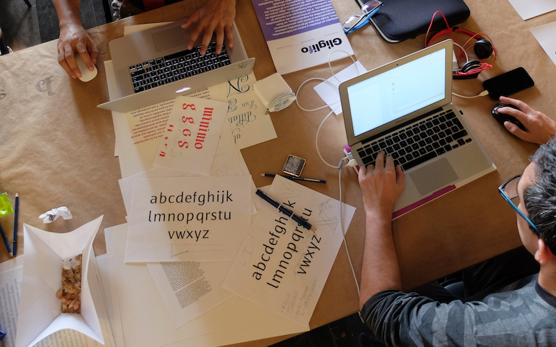 Concepto curso: Glíglifo propone un curso intensivo y pasional, un retiro espiritual, una experiencia en la que los amantes de la letra aprenderemos a crear, sentir y diseñar un alfabeto. Cada edición, 25 personas vienen con nosotros a trabajar intensamente durante una semana en un proyecto integral de diseño de una tipografía y producción de la fuente. [+]